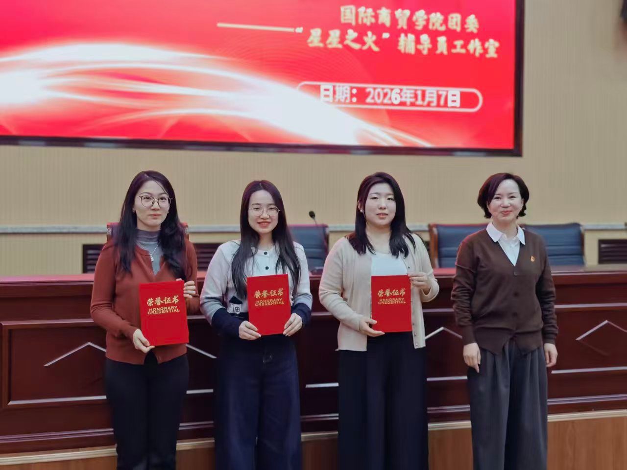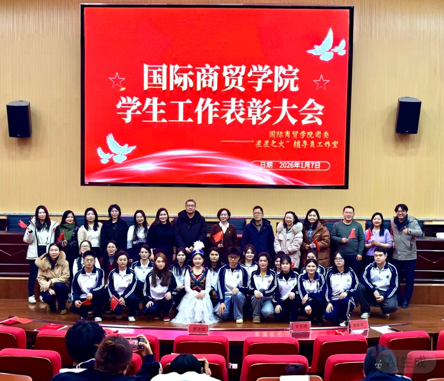 为落实“立德树人”根本任务,发挥先进典型示范引领作用,1月7日下午,国际商贸学院2025年度学生工作表彰大会在崇德楼Z115会议室举行。学院党委书记、组织员,全体辅导员、班主任及学生代表共300余人参会。